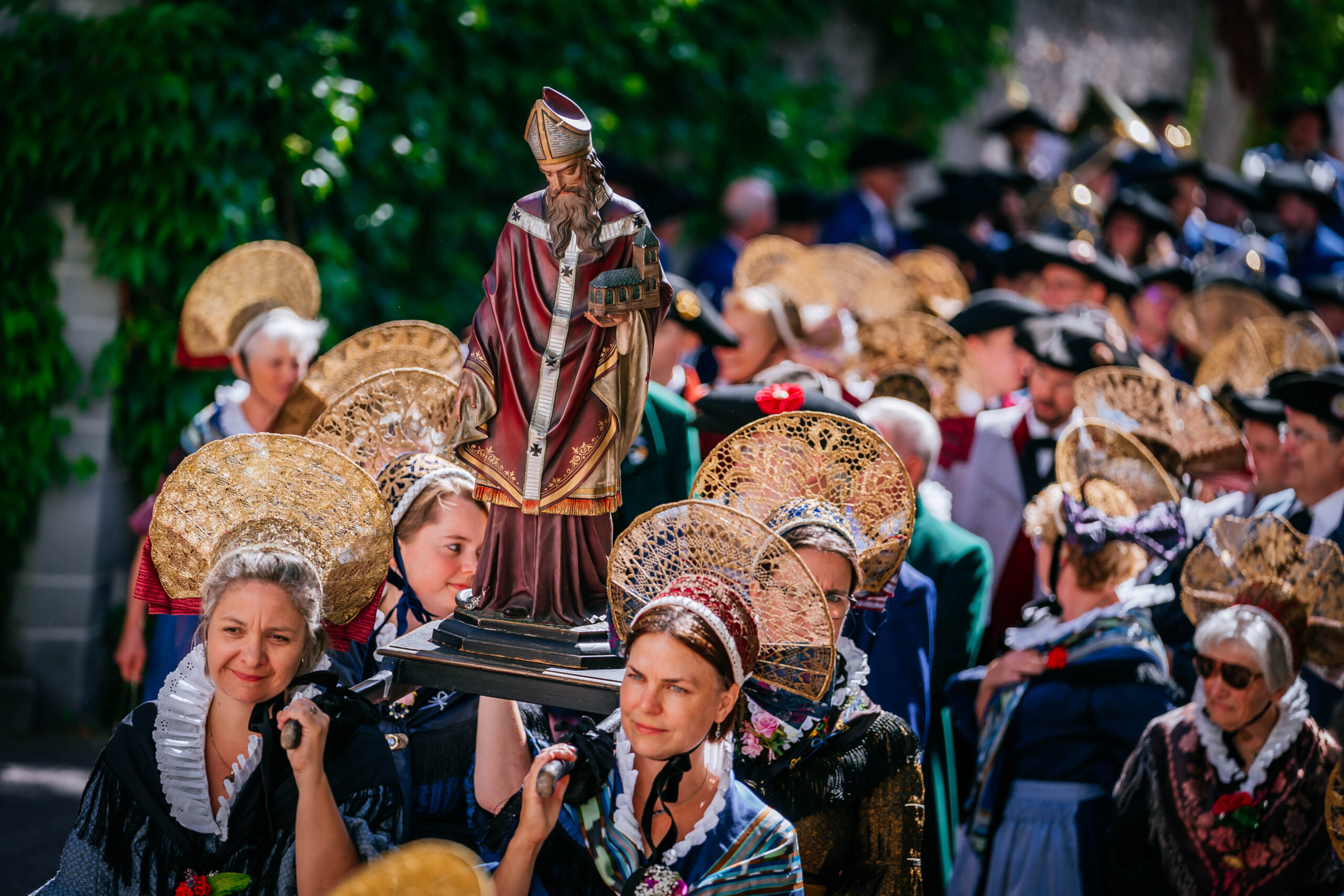 Es schließt sich direkt die beeindruckende Prozession mit den kostbaren Reliquien der drei Hausherren Theopont, Senesius und Zeno unter Mitwirkung der Stadtkapelle durch die Radolfzeller Innenstadt an, um so Segen und Wohlergehen für die Stadt zu erbitten.